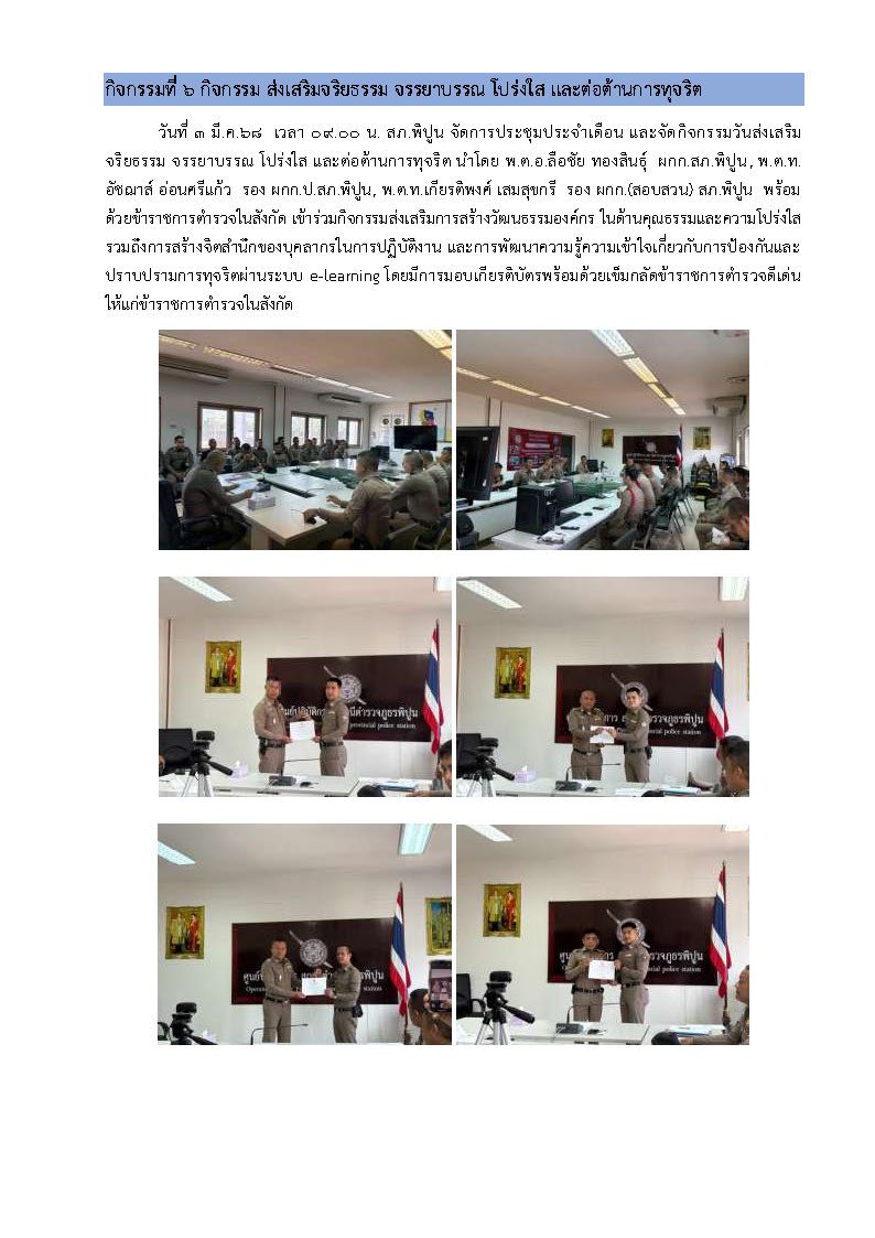 กิจกรรม ส่งเสริมจริยธรรม จรรยาบรรณ โปร่งใส และต่อต้านการทุจริต 3 มีนาคม 2568 โดย xpfreeman / การมีส่วนร่วมของหัวหน้าสถานีตำรวจ,กิจกรรม ITA,ข่าวกิจกรรม,ผลการปฏิบัติงานของ สภ.พิปูน,งานอำนวยการ Post Views: 45 FacebookFacebookXXLINELine