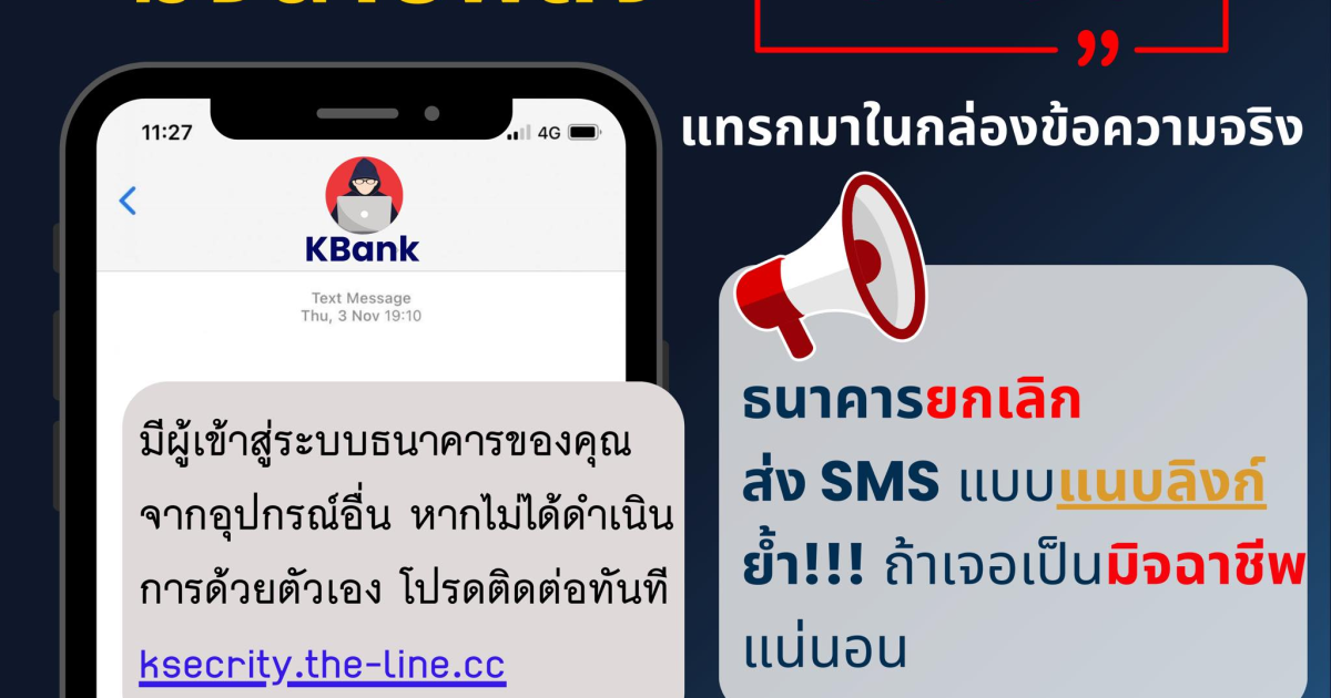 ธนาคารยกเลิกการส่ง SMS แบบแนบลิงก์แล้ว หากได้รับ SMS ที่มีลิงก์แนบ จะไม่ใช่ข้อความที่มาจากธนาคารอย่างแน่นอน