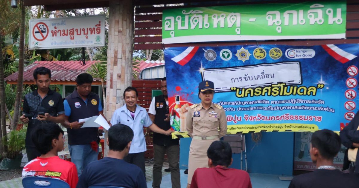 พ.ต.อ.ลือชัย ทองสินธุ์ ผู้กำกับการสถานีตำรวจภูธรพิปูน ร่วมกับ นางศรุดา อินทร์ประพันธ์ นายอำเภอพิปูน น.ส.อารีย์ แร่ทอง สาธารณสุขอำเภอพิปูน ผอ.รพ.สต.บ้านจุฬาภรณ์พัฒนา 2 และ จนท.รพ.สต. ปลัดอำเภอหัวหน้าฝ่ายความมั่นคง ปลัดอำเภอประจำตำบลเขาพระ กำนันตำบลเขาพระ สารวัตรกำนันตำบลเขาพระ ผู้ใหญ่บ้าน ม.11 ต.เขาพระ พร้อมผู้ช่วยผู้ใหญ่บ้าน ลงพื้นที่ รพ.สต.บ้านจุฬาภรณ์พัฒนา 2 เพื่อขับเคลื่อนโครงการ นครศรีโมเดล ในการป้องกันและแก้ไขปัญหายาเสพติด ร่วมซักประวัติผู้ติดยาเสพติดในพื้นที่ตำบลเขาพระ ที่พบสารเสพติดจำนวน 9 ราย เข้าสู่กระบวนการบำบัดต่อไป