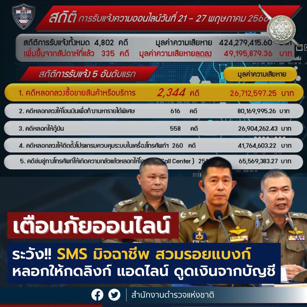 เนื่องจากในรอบสัปดาห์ มีการจับกุมมิจฉาชีพรับจ้างแก๊งคอลเซ็นเตอร์ (Call Center) นำเครื่องจำลองสถานีฐาน (False Base Station) ส่งข้อความสั้น (SMS) สวมรอยช่องทางปกติของสถาบันการเงิน และหน่วยงานอื่น หลอกลวงผู้เสียหายกดลิงก์เพิ่มเพื่อนไลน์และหลอกให้โหลดแอปพลิเคชันควบคุมเครื่องโทรศัพท์แล้วโอนเงินออกจาก Mobile Banking ของผู้เสียหาย