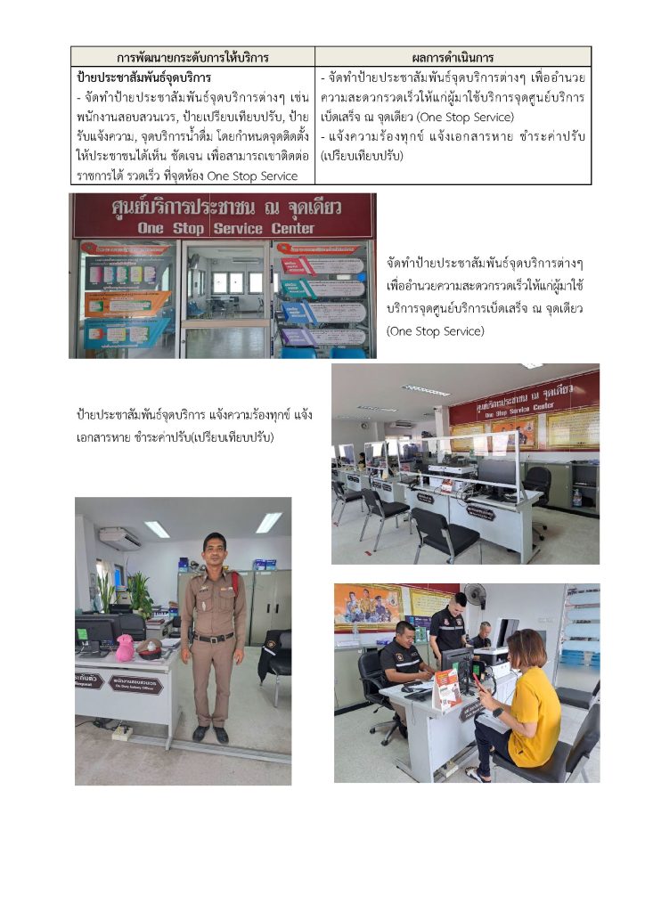 มีการจัดรวมงานบริการไว้ในบริเวณเดียวกัน หรือต่อเนื่องกัน ได้แก่ งานรับแจ้งความ ร้องทุกข์กล่าวโทษ และงานเปรียบเทียบปรับคดีอาญา และ/หรือคดีจราจร