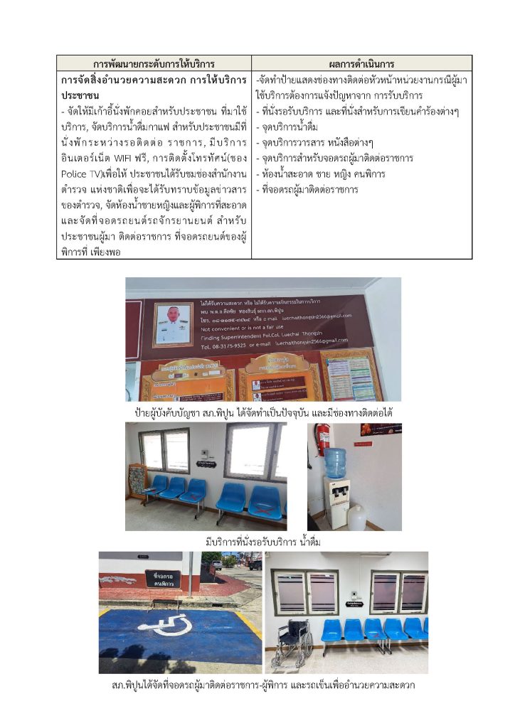 จัดสิ่งอำนวยความสะดวกสำหรับผู้มาใช้บริการตามความเหมาะสมของพื้นที่ ได้แก่ น้ำดื่ม เครื่องดื่มสัญญาณอินเตอร์เน็ต