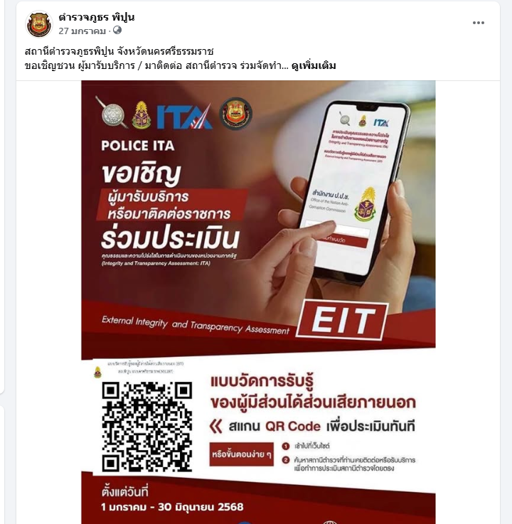 สภ.พิปูน ประกาศนโยบาย No Gift Policy ประจำปี 2569: โปร่งใส ซื่อตรง ยึดมั่นจริยธรรม