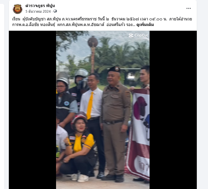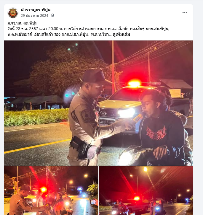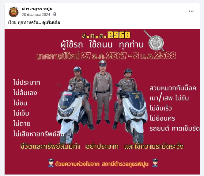 วันนี้ ๑๓ เม.ย. ๒๕๖๘ เวลา ๑๐.๐๐ น. พ.ต.อ.ลือชัย ทองสินธ์ุ ผกก.สภ.พิปูน ออกตรวจ ดูแลความปลอดภัยการใช้